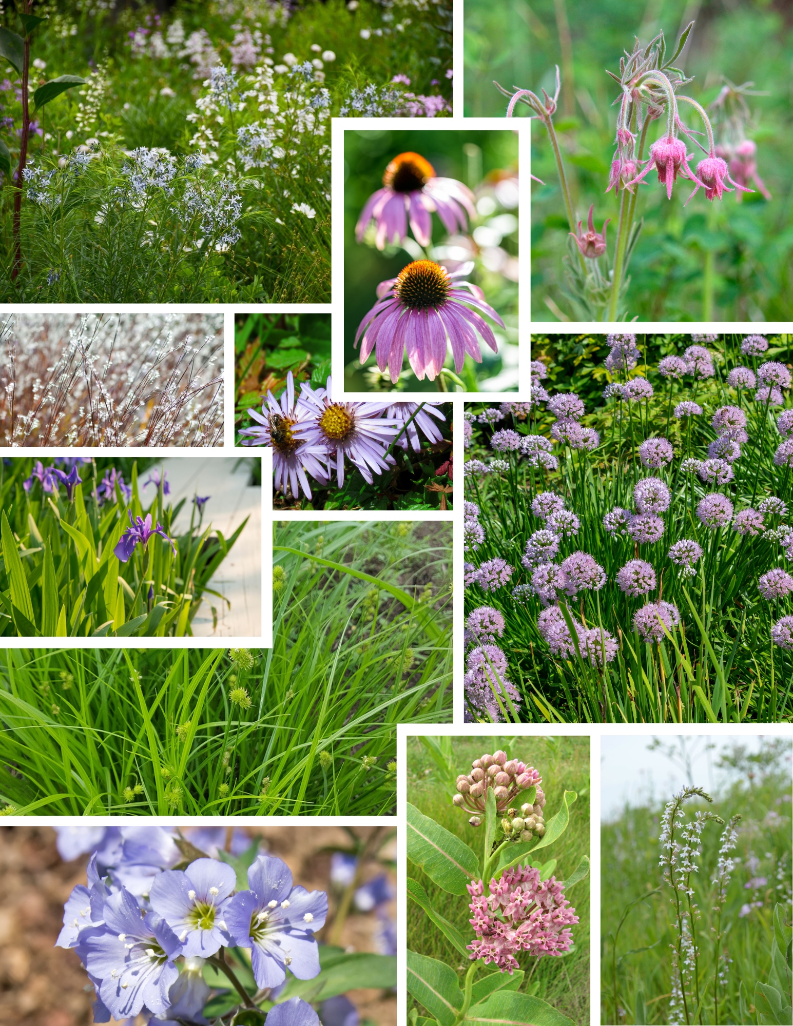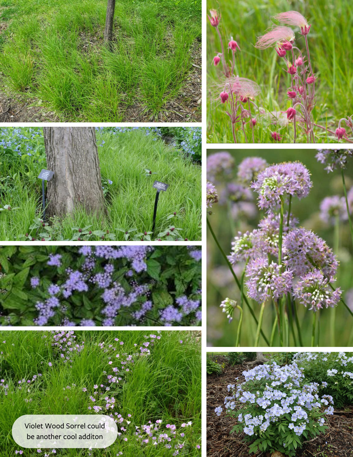 A front yard garden in full sun. Soft, clean vibes. Short and tidy.